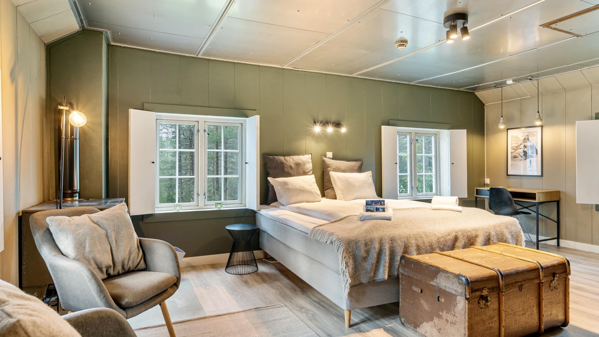 ▪ A traditional log barn: spanning two floors plus a loft, currently used for storage. Renovation work has already begun, including insulation, new interior cladding, and installation of modern electricity and water systems. Once completed, this conversion has the potential to expand Herangtunet’s capacity by 6–8 rooms and up to 20 additional guest beds.