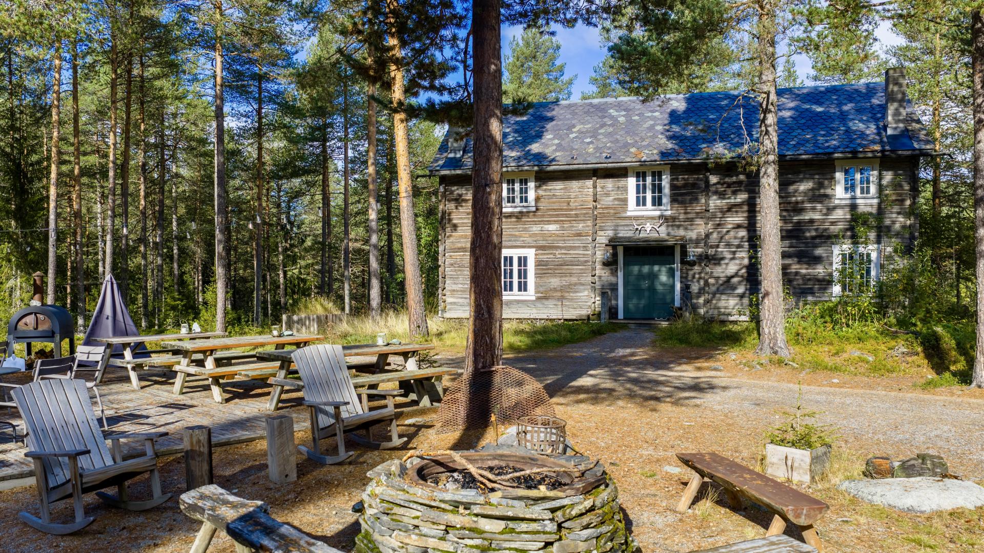 The property features outdoor social areas with fire pits, barbecues, and wood stoves, and is surrounded by wilderness at the foot of the Jotunheimen mountains—an ideal location for outdoor activities.