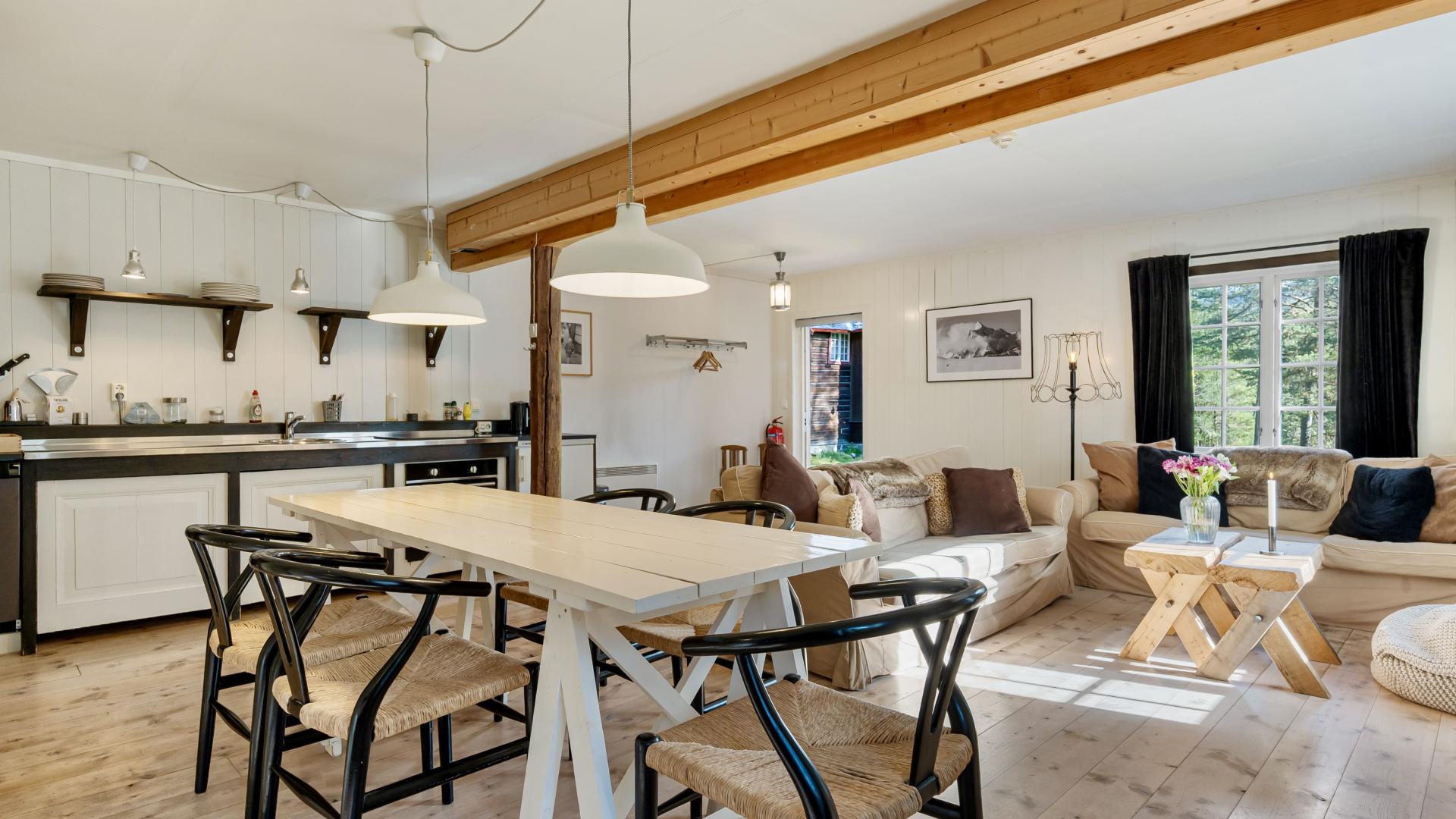 The groundwork for this conversion has already been laid, making it a promising project. Initial work began in 2023, with a new electrical system and water supply established. The barn is well-insulated, and a modern, water-based heating system powered by two new energy wells has been installed in the floor, providing an excellent foundation for future construction. The estimated cost for a full conversion is between 3.5 to 4 MNOK, a worthwhile investment given the potential for increased earnings and property value.