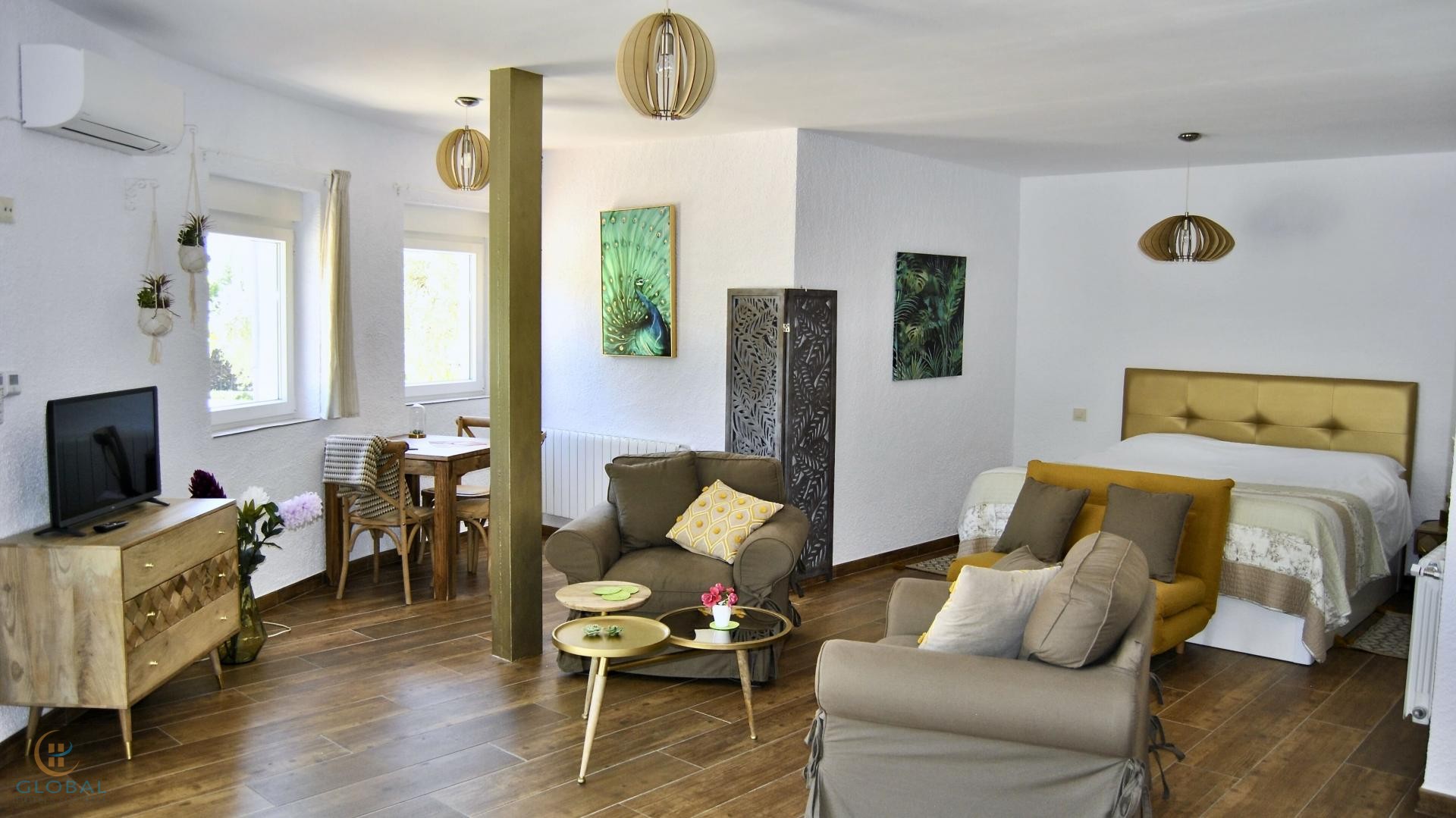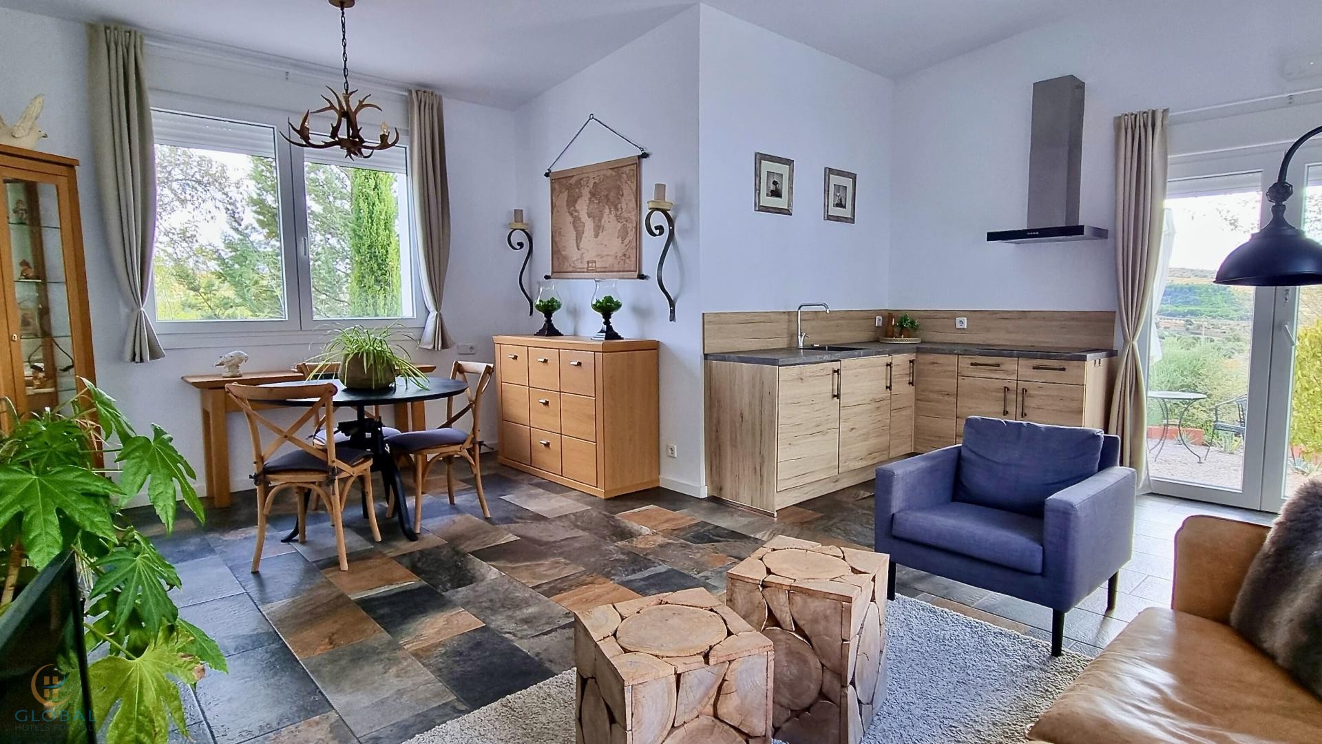 - 3 private studios — each with kitchen, bathroom, and terrace