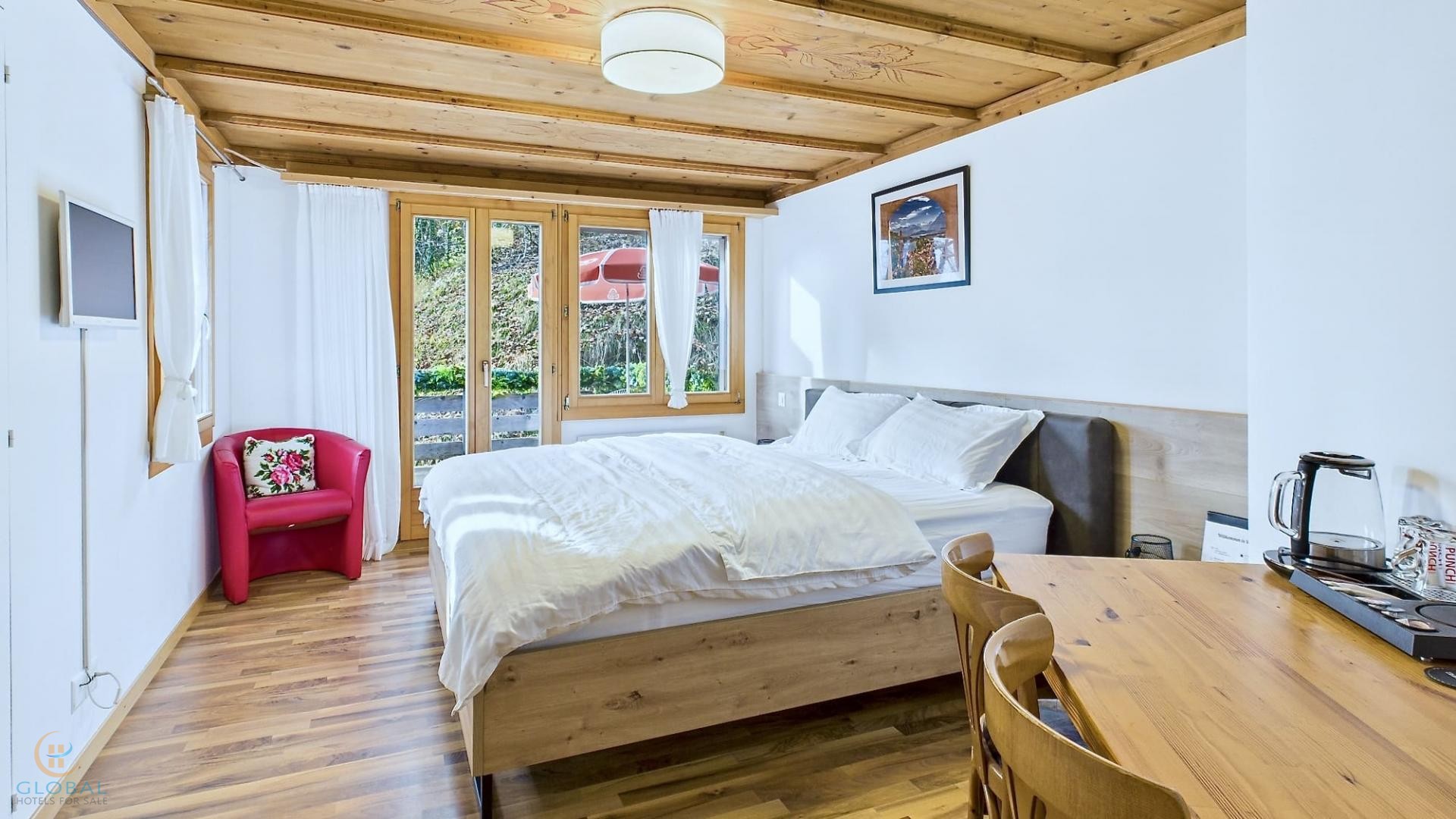 Today, the hotel presents itself as a charming, manageable accommodation and catering facility with great development potential in a prime location in Brienz. With its 9 guest rooms, spacious catering areas, and extensive grounds, it offers both investors and future operators an excellent basis for realizing an independent, stylish, and economically attractive hotel concept.