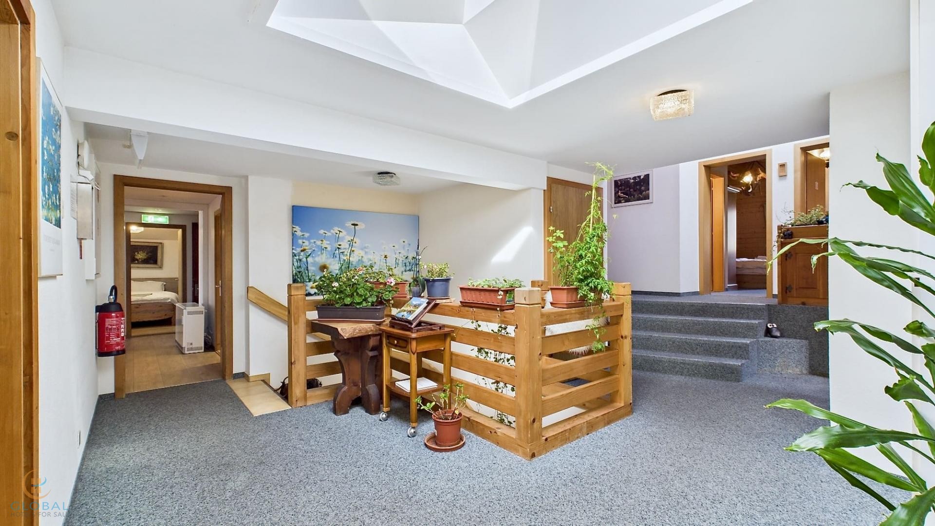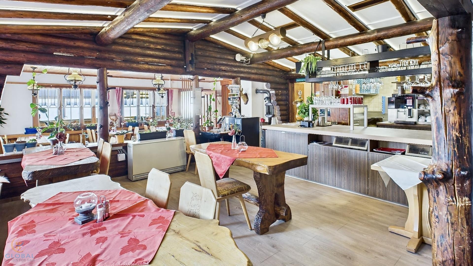 The hotel comprises two floors with a restaurant, bar, terrace, event hall, and guest rooms. Modernization work was carried out in 2023, laying the foundation for a contemporary infrastructure. Despite its somewhat basic furnishings, the building is well maintained, functional, and ready for immediate use—ideal as a solid basis for individual conversion or expansion projects.